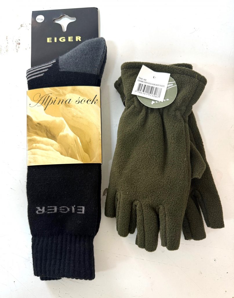 Stay warm this winter while fishing with this Sock & Glove combo, As you can see you will recieve a pair of socks 8-10 size along with a pair of fingerless gloves